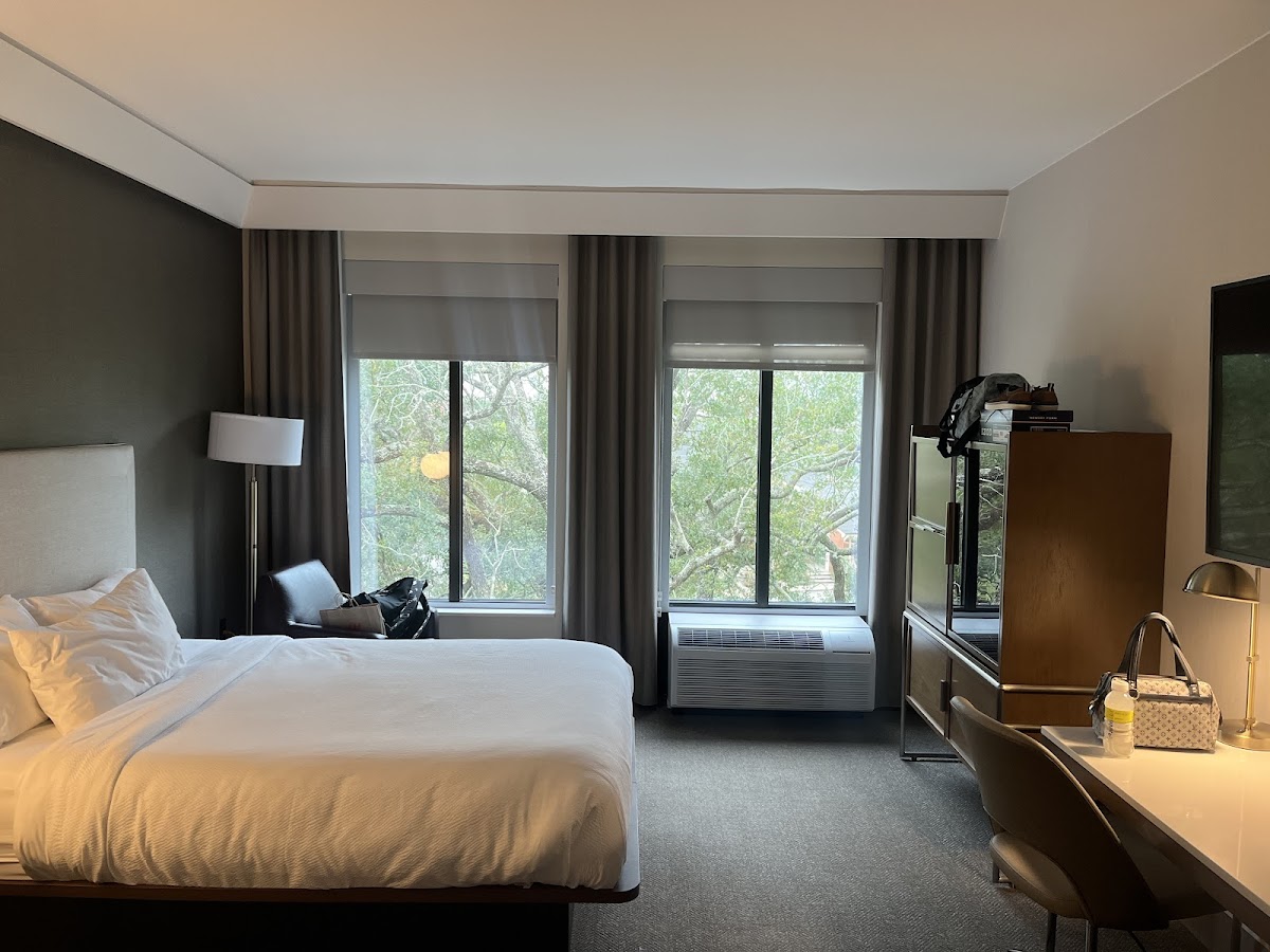 One of the finest & most expensive hotels in Thomasville, Georgia. Conveniently located in downtown and a walk away from churches, restaurants, shops, and attractions. It was close to all the places we needed to go in Thomasville. I loved the new furnishings and the spacious ambience of the hotel. At $110 a night, it is on the pricey side. We stayed two nights. We liked how impressive and clean our room was upon entering. The sensor light in the large mirror at the entrance was a nice touch. The bathroom shower was modern and the long shower there was a relief. There were very few to no concerns. I looked in the closet to use a spare throw blanket. I found spare bed sheets and a pillow with a blood spot. The air conditioning is loud but no bother to us. The internet for the television was disconnected so we couldn’t watch our Netflix or Max on the television on our second night. They have a Keurig coffee machine and coffee inside the room, a fridge, and microwave are free amenities inside the room, yet there is no free breakfast and coffee downstairs. They do have a small Shoppette to buy necessities and bistro to buy meals & drinks in the lobby. Two large hot coffees in the lobby cost us $18. The menu looked good yet expensive as well. We opted eating the snacks & food we had on us and buying a quick ready meal from Publix. If you want to stay a walk away from certain places and attractions in downtown, this hotel is very ideal & convenient.